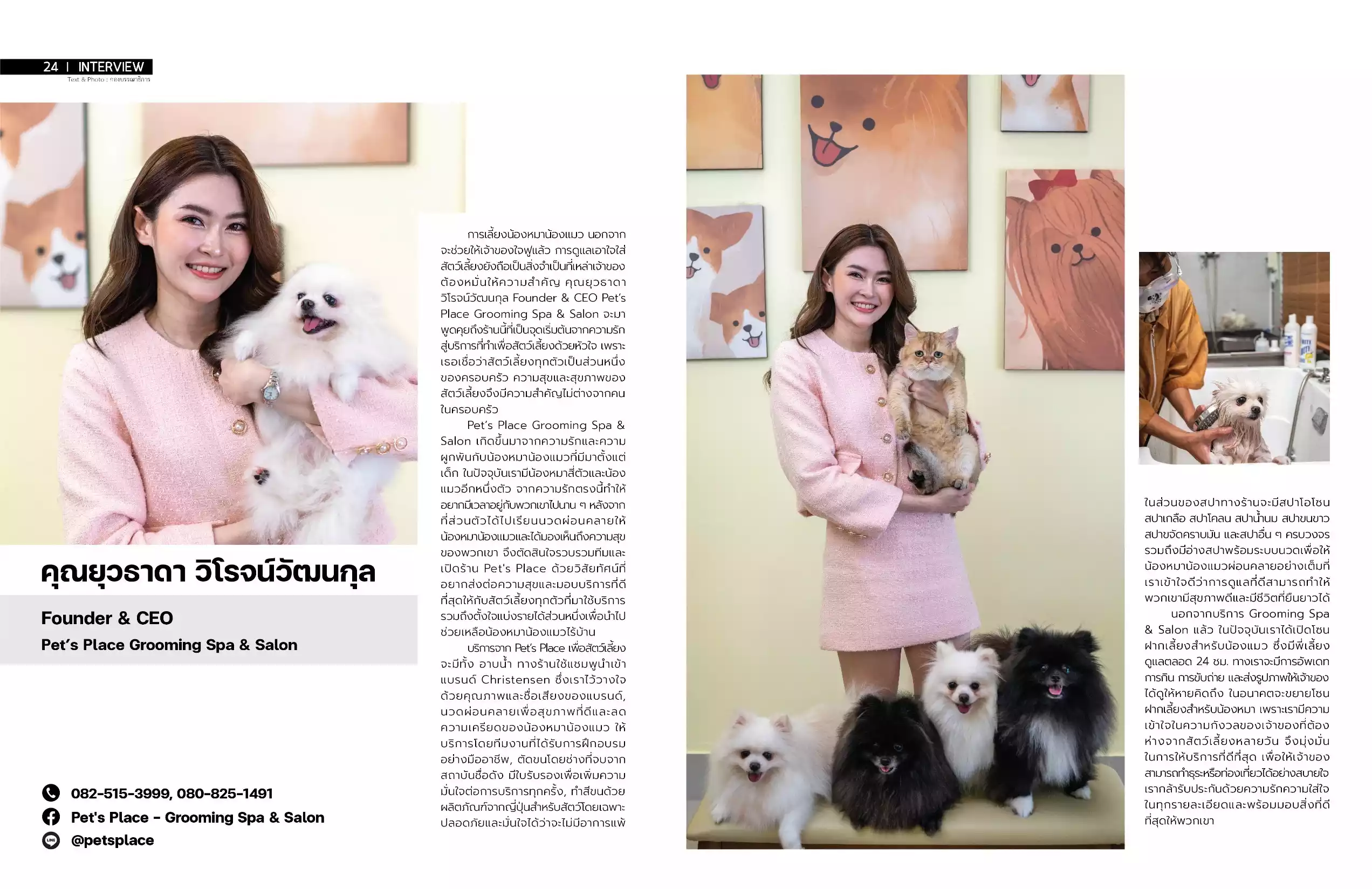 การเลี้ยงน้องหมาน้องแมว นอกจากจะช่วยให้เจ้าของใจฟูแล้ว การดูแลเอาใจใส่สัตว์เลี้ยงยังถือเป็นสิ่งจำเป็นที่เหล่าเจ้าของต้องหมั่นให้ความสำคัญ คุณยุวธาดา วิโรจน์วัฒนกุล Founder & CEO Pet’s Place Grooming Spa & Salon จะมาพูดคุยถึงร้านนี้ที่เป็นจุดเริ่มต้นจากความรัก สู่บริการที่ทำเพื่อสัตว์เลี้ยงด้วยหัวใจ เพราะเธอเชื่อว่าสัตว์เลี้ยงทุกตัวเป็นส่วนหนึ่งของครอบครัว ความสุขและสุขภาพของสัตว์เลี้ยงจึงมีความสำคัญไม่ต่างจากคนในครอบครัว